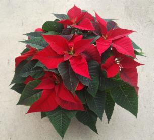 Weihnachtsstern im 13er-Topf aus einem ca 45 Grad Winkel von oben